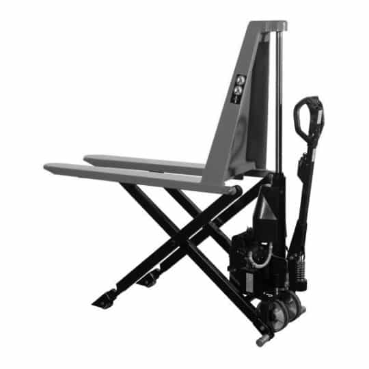 Вилочная гидравлическая тележка с подъемом позволяет не только перевозить палеты и контейнеры, но и приподнимать их на высоту