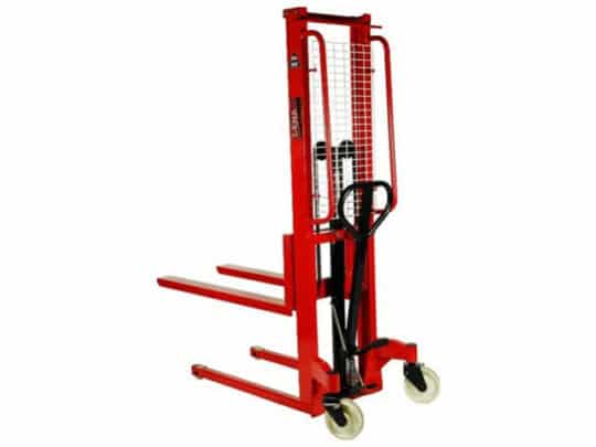 Поворотные колеса делают штабелер маневренным, позволяя работать в узких пространствах.