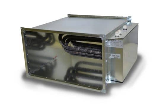 Канальные электрические воздухонагреватели LM применяются для подогрева воздуха и других невзрывоопасных газовых смесей, без содержания липких и волокнистых материалов и агрессивных веществ в системах приточной вентиляции и кондиционирования воздуха, а также как вторичный подогреватель в отдельных помещениях, где требуется индивидуальная регулировка температуры. Содержание пыли и других твердых примесей не должно превышать 0,1 г/м3. Нагреватели серии /НЕ. представлены девятью типоразмерами, в каждом из которых предлагаются различные варианты мощности (от 3 до 64 кВт), что увеличивает функциональные возможности данного типа оборудования. Корпус коммутационная коробка изготавливается из оцинкованного стального листа. В качестве нагревателей используются ТЭНы из нержавеющей стали повышенной надежности. Электрокалориферы серии /НE. имеют степень защиты IP 40. Нагреватели стандартно оснащены двумя термостатами защиты от перегрева корпуса и воздуха, срабатывающие при температуре +80°С, а также цепью термоконтактов, которая размыкается в случае перегрева. Монтаж может производиться в любом положении, кроме положения коммутационной коробкой вниз, при помощи фланцевого соединения. Электрические воздухонагреватели необходимо монтировать в соответствии с указанным на корпусе направлением потока воздуха. Скорость потока воздуха через электрический нагреватель должна быть не менее 1,2 м/с. Для предотвращения загрязнения электронагревателя необходимо перед ним на расстоянии не менее 1 м установить воздушный фильтр. В соединительной коробке имеются необходимые клеммы для электросоединений, с зажимами для простого и быстрого монтажа. Питающее напряжение 1~220В или 3~380В. Регулирование мощности может осуществляться в двух вариантах: * Ступенчатое регулирование от 1 до 4 ступеней, которые включаются на полную мощность при изменении наружных условий. Данное регулирование приводит к волнообразному изменению температуры приточного воздуха. * Плавное регулирование посредствам широтно-импульсной модуляции (ШИМ-блока). ШИМ-сигнал – это импульсный (дискретный) сигнал постоянной частоты и переменной скважности (отношения длительности импульса к периоду его следования). ШИМ-блок представляет собой твердотельное оптореле и симисторный ключ (для коммутации в моменты