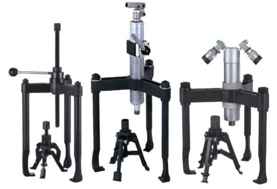 – 3-захватная конструкция обеспечивает надежный захват. Механизм центрирования съемника с внутренним захватом обеспечивает равномерное распределение нагрузки, исключая соскальзывание захватов со снимаемой детали.