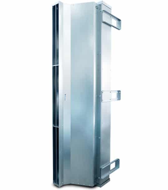Тепловая завеса IP54 с повышенной коррозионной стойкостью для проемов высотой от 3 до 6 метров в помещениях с атмосферой, содержащей капельную влагу, например, в автомойках. Электрическая тепловая завеса IP54 изготавливается с соплом под углом 30° (под заказ).