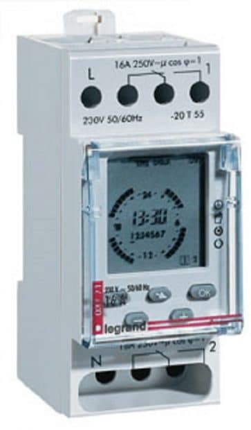 Цифровой недельный таймер для задания одной из 28 программ работы. Каждая программа задает время и дату включения и отключения прибора. При отсутствии активности в течении 60 секунд при программировании таймер устанавливается в начальное положение. Таймер предназначен для настенного монтажа (на дин-рейке или в шкафу автоматики).