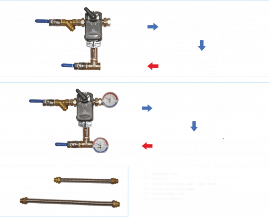 Для удобства подключения узлов RV на объекте опционально предусмотрены гибкие подводки из