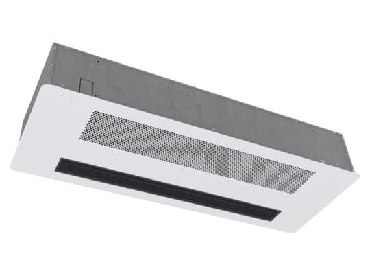 Встраиваемая потолочная воздушная завеса для проёмов высотой до 4,5 метров. Завеса без источника тепла предназначена для скрытой установки за подвесным потолком. Сервис и обслуживание осуществляется через переднюю панель завесы.